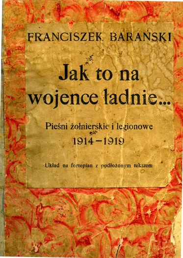 Jak to na wojence ładnie: pieśni żołnierskie i legionowe 1914–1919 Barański, Franciszek (zebrał) Oznaczenie autora wg wydawcy: Barański, Franciszek Obsada instrumentalna: na fortepian z podłożonym tekstem |