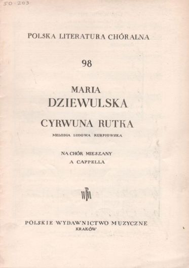 Cyrwuna rutka: melodia ludowa kurpiowska Dziewulska, Maria (opracowanie) Oznaczenie autora wg wydawcy: Dziewulska Maria Obsada instrumentalna: chór mieszany a capella |