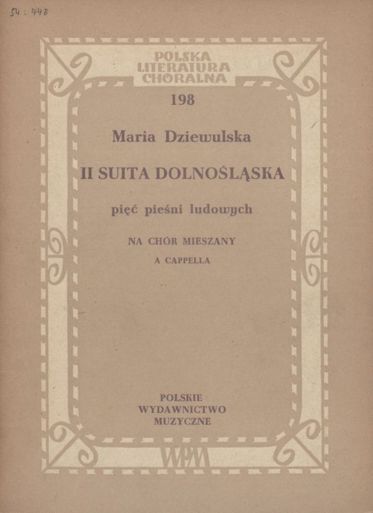 II suita dolnośląska: pięć pieśni ludowych Dziewulska, Maria (opracowanie) Oznaczenie autora wg wydawcy: Dziewulska Maria Obsada instrumentalna: chór mieszany a cappella |