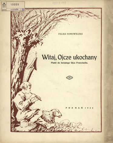 Witaj, Ojcze ukochany: pieśń do świętego ojca Franciszka: op. 22 Nowowiejski, Feliks (muzyka) Oznaczenie autora wg wydawcy: Nowowiejski Feliks Obsada instrumentalna: głosy z fortepianem |