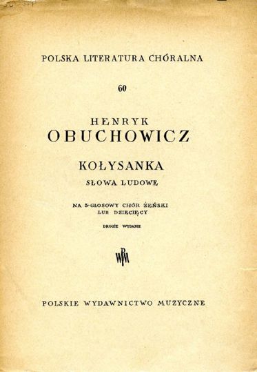 Kołysanka: słowa ludowe: na 3-głosowy chór żeński lub dziecięcy Obuchowicz, Henryk (opracowanie) Oznaczenie autora wg wydawcy: Obuchowicz Henryk Obsada instrumentalna: Na 3-głosowy chór żeński lub dziecięcy. |