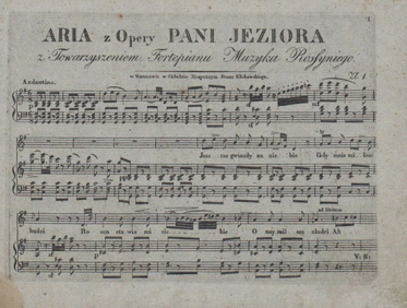 Aria z opery „Pani jeziora”: z towarzyszeniem fortepianu Rossini, Gioacchino Antonio (muzyka) Oznaczenie autora wg wydawcy: Rossini Gioacchino Obsada instrumentalna: Na głos z fortepianem. |