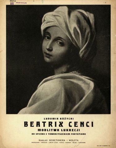 Beatrix Cenci: modlitwa Lukrecji: do śpiewu z towarzyszeniem fortepianu Różycki, Ludomir (muzyka, słowa) Oznaczenie autora wg wydawcy: Różycki Ludomir Obsada instrumentalna: Na głos z fortepianem. |