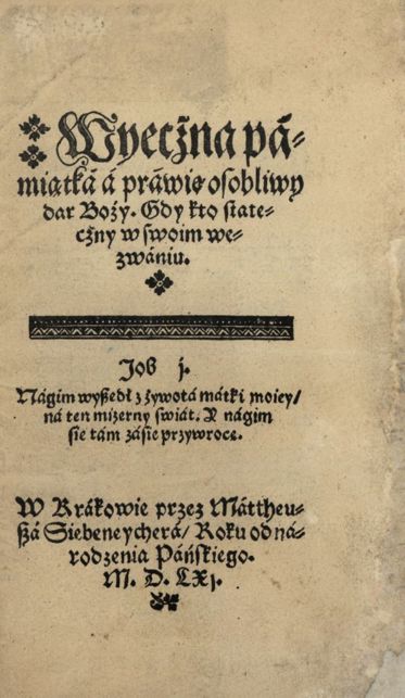 Publikacja wznowiona z pierwodruku Mattheusza Siebeneychera z 1560 r.