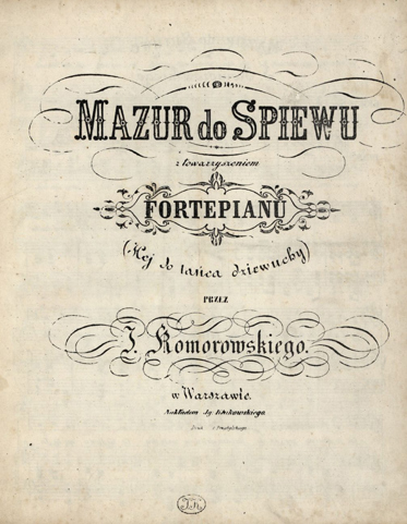 Mazur do śpiewu z towarzyszeniem fortepianu Komorowski, Ignacy Marceli (muzyka) Oznaczenie autora wg wydawcy: Komorowski Ignacy Marceli Obsada instrumentalna: Na głos z fortepianem. |
