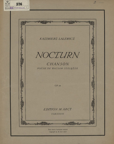 Nocturn: Chanson: Poésie de Wacław Szelążek: op. 14