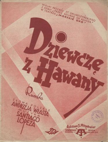 na okładce zmieszczono informacje: Wielki przebój S. Gruszczyńskiego z rewii „Przez dziurkę od klucza” w teatrze „Morskie oko”.