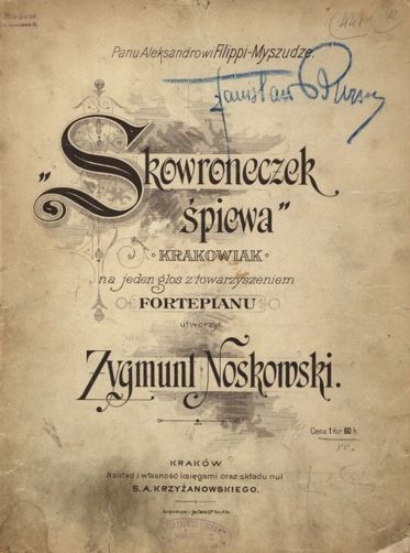 Brak informacji o dacie wydania druku muzycznego. Na okładce publikacji znajduje się dedykacja: Panu Aleksandrowi Filippi-Myszudze.