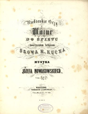 Niebieskie oczy: mazur do śpiewu z towarzyszeniem fortepianu