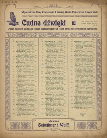 Na pierwszej i ostatniej stronie zamieszczono wykaz utworów wydanych w ramach serii. Incipit: Gdy niemowlęciem byłem małem.