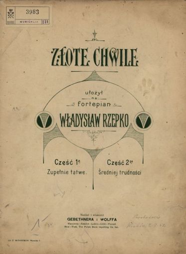 Złote chwile Rzepko, Władysław (układ) Oznaczenie autora wg wydawcy: Rzepko Władysław Obsada instrumentalna: Na fortepian. |