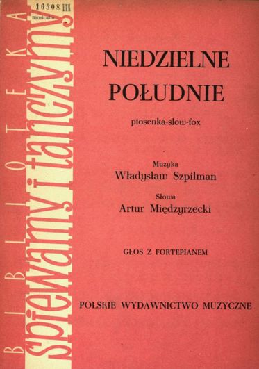 Niedzielne południe: piosenka slow-fox: głos z fortepianem Szpilman, Władysław Oznaczenie autora wg wydawcy: Szpilman Władysław, Międzyrzecki Artur Obsada instrumentalna: Na głos z fortepianem. |