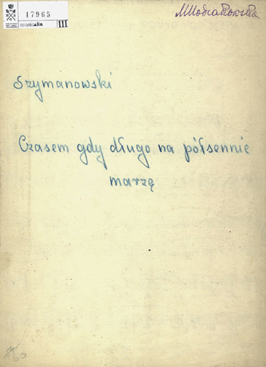 Brak informacji o wydawcy, miejscu oraz roku wydania druku muzycznego.