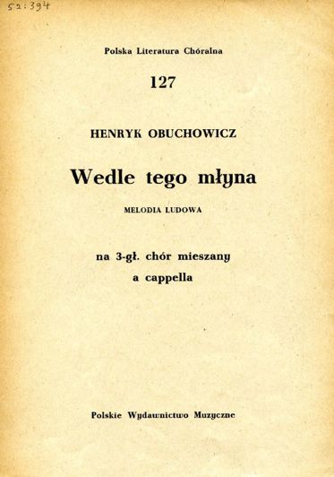 Wedle tego młyna: melodia ludowa Obuchowicz, Henryk (opracowanie) Oznaczenie autora wg wydawcy: Obuchowicz Henryk Obsada instrumentalna: 3-głosowy chór mieszany a cappella |