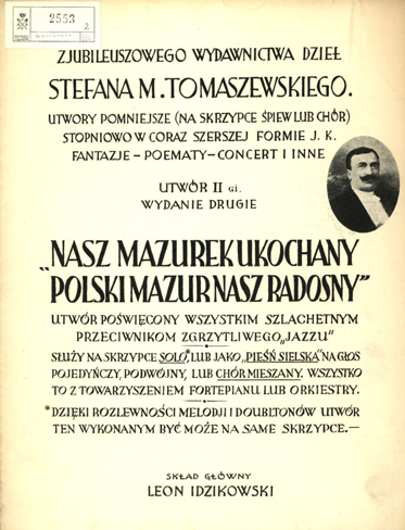 Nasz mazurek ukochany polski mazur nasz radosny Tomaszewski, Mariusz Stefan (muzyka) Oznaczenie autora wg wydawcy: Tomaszewski Mariusz Stefan Obsada instrumentalna: Na skrzypce solo lub na jeden, dwa głosy lub chór mieszany z fortepianem lub orkiestrą. W zbiorze: Z jubileuszowego wydawnictwa dzieł Stefana M. Tomaszewskiego : utwory pomniejsze , 2 |