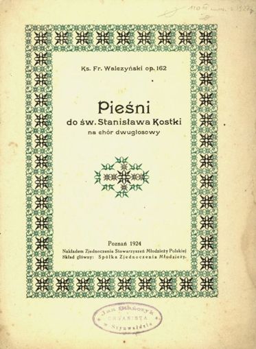 Pieśni do św. Stanisława Kostki: na chór dwugłosowy: op. 162 Walczyński, Franciszek (muzyka) Oznaczenie autora wg wydawcy: Walczyński Franciszek Obsada instrumentalna: Na chór dwugłosowy. |