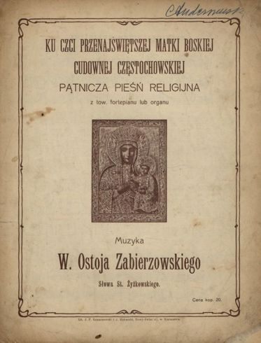 Ku czci przenajświętszej Matki Boskiej cudownej częstochowskiej: pątnicza pieśń religijna z towarzyszeniem fortepianu lub organu