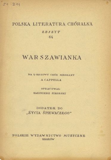 Warszawianka: na 4-głosowy chór mieszany a cappella