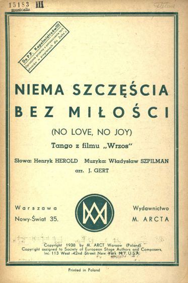 Druk muzyczny obejmujący 21 stron. Wariant tytułu w języku angielskim: No love, no joy. Na ostatniej stronie wykaz najnowszych przebojów Wydawnictwa Muzycznego Arct.