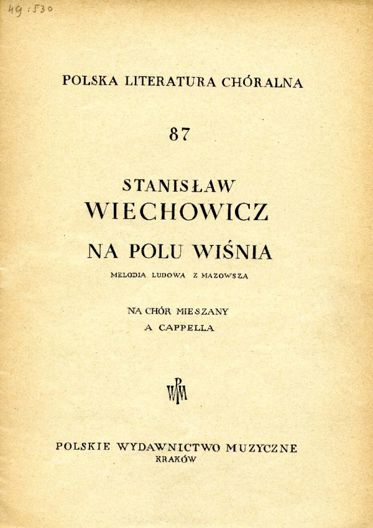 Na polu wiśnia: melodia ludowa z Mazowsza: na chór mieszany a cappella Wiechowicz, Stanisław (opracowanie) Oznaczenie autora wg wydawcy: Wiechowicz Stanisław Obsada instrumentalna: Na chór mieszany a cappella. |